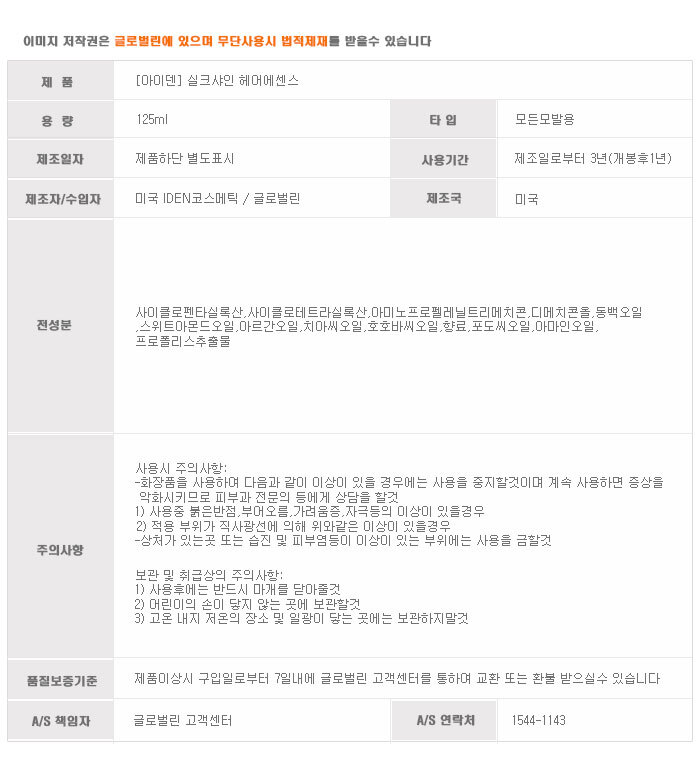 HOME > ALL 아이덴 > 헤어에센스 > [아이덴 수입정품] 스무스 테라피 실크샤인(손상모 에센스) 125ml